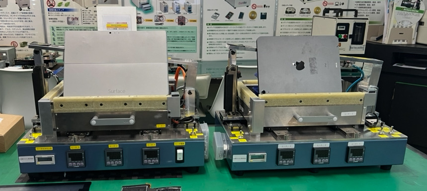 ご要望の多かったMicrosoft surfeceの分解が可能になりました。大量分解の特注対応(タブレット分解装置と特殊過熱ユニット)も可能です。